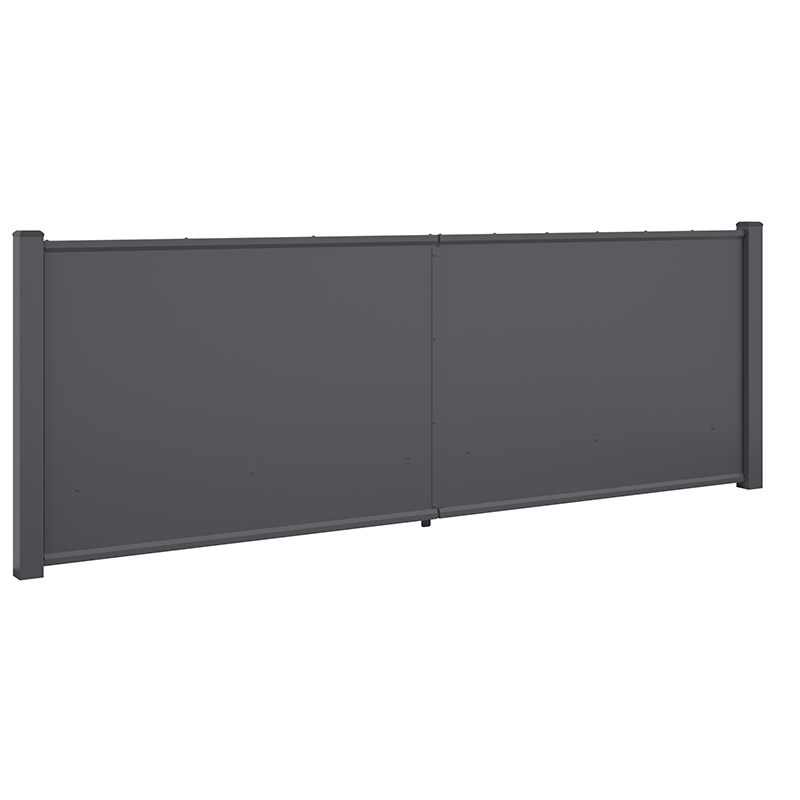 Brama została dopasowana do stylistyki i wymiarów paneli NO., dzięki czemu tworzy jednolity system ogrodzeniowy. Konstrukcja oparta jest na ramie wykonanej z profili stalowych ocynkowanych, co zapewnia wysoką odporność na warunki atmosferyczne oraz wieloletnią trwałość.