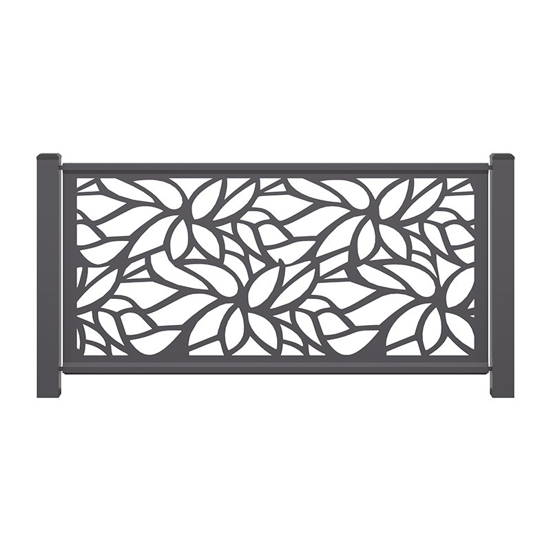 Dekoracyjne przęsło z ażurowym, organicznym wzorem inspirowanym naturą. Idealne zarówno do klasycznych jak i modernistycznych domów. Lekka forma dodaje ogrodzeniu elegancji i świeżości.